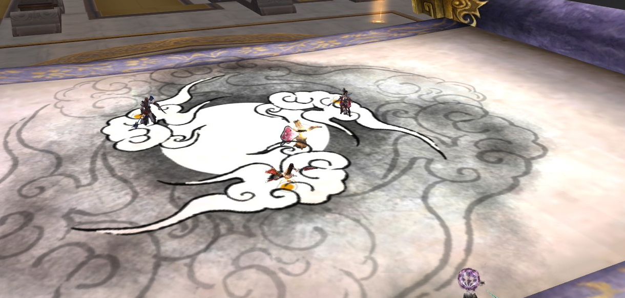 拿了清水墨水的三人,等画卷上的光球滚过去后,按事先安排好的位置站好自己的点。站好后立刻不停右键点清水,清水使用完毕后立刻点墨水(如果使用错误或者站位不对则画卷展开后5S团灭),成功的话老康会喊你们是在破坏我的画,继续输出,如果在第一幅画卷阶段输出到30%以下,则可以直接输出到死,如果没有,则会迅速展第二幅画卷,重复以上过程,直到结束。