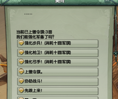 上缴了的军旗可以在非战斗期用来补充士兵,补充军官,或者强化士兵。