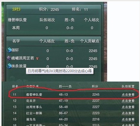 首先还是做下介绍:我的33队伍配置为剑纯、气纯、奶花。上个赛季我们队伍排名20+。本人网通一/二 飞龙醉舞万马服的小QC一枚,队友剑纯"孤星"、奶花"可可"。