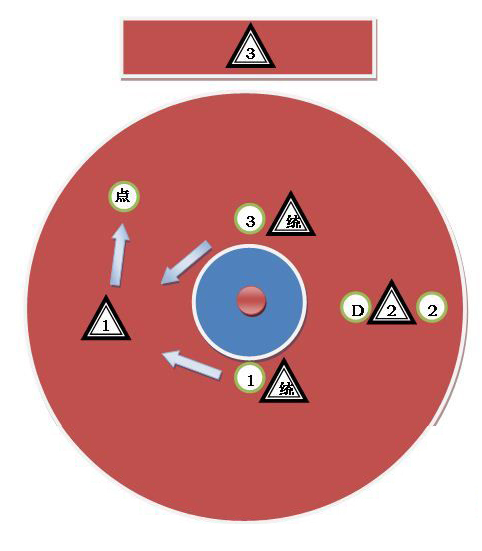 P1:如图所示,1号T和2号T拉住相应的boss到指定位置,3号T内圈待命。中间会出4波泰拳手,个数为2、3、3、2,同时刷新枪斧兵,个数为1、2、2、1。团长安排集火掉泰拳手(要求DPS要暴力,有一个集火不掉就重来吧),3号T拉住刷新的枪斧兵。DPS打完泰拳手后打枪斧兵,枪斧兵打至残血,T拉到中间吃掉落的红球,在枪斧兵读条完秒掉。另外中心处指挥安排单独的DPS去吃掉落的绿球,会中“躁动的能量”,远离人群就行。2号boss段XX会有正面AOE“狂杀”,安排三个治疗全程去挡,以免我方NPC被杀,“狂杀”很慢,无压力的。