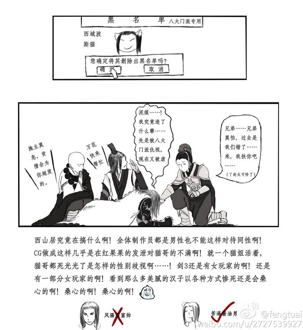 看了剑3的新CG,原本对猫哥无爱的,但现在已经不能直视他了,太可怜了……这个新CG不如叫《猫哥的101种死法》算了啊!各种惨死啊!而且死的都是猫哥这是要闹哪样啊!不能不吐槽啊!