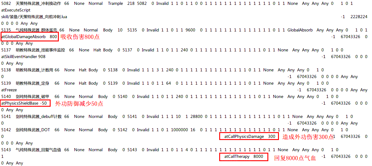 特殊武器技能相关内容,其中部分内容受自身属性加成的,部分BUFF可叠加,所以别看这个数值很低就大呼垃圾
