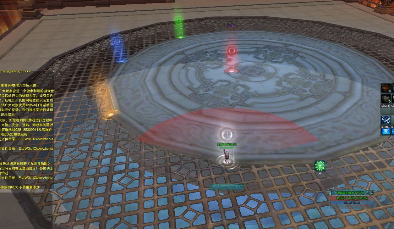 图中的红色人物画圈圈是BOSS夸张化后的挥击范围。7-7.5尺左右一般我设8尺。就算不走的话也不会挥到其他小队。