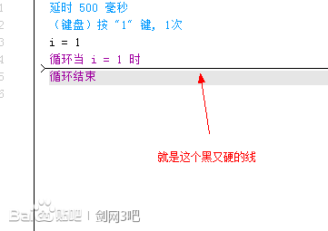 然后,编辑框,点击第四句跟第五句语句之间,会出现一个黑色的横线。如下图所示