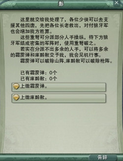 一路开剧情过来,月弄痕会站在高台的狼牙重弩边上,我们就可以把路上收集的霹雳弹跟麻醉散上缴给月弄痕。