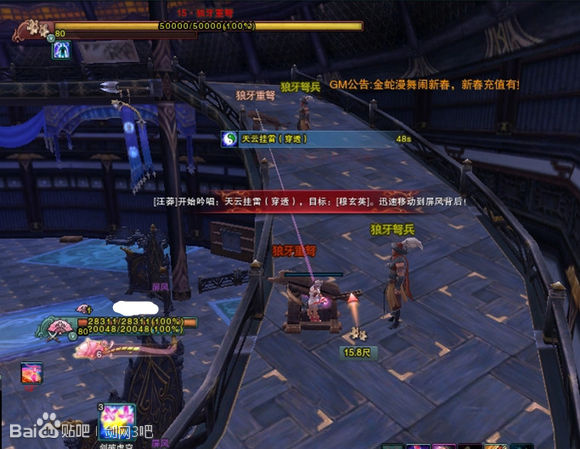而我们设的这个距离圈为10,则是因为靠近BOSS十尺会中一个持续八秒的【狼啸】BUFF,不能运功,且有狼啸的同时再中狼煞就是秒杀。