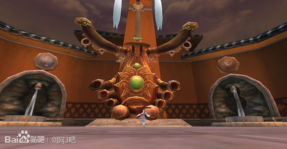 例如追踪线连的是这个乐器,这个时候我们就需要剑纯跑到对应的乐器来跳上两边的高台。然后踩中地上的升字,我们就可以获得扶摇,再跳起来对着乐器插个气场。