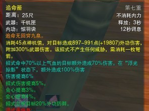 追命箭:算是最能代表惊羽的技能了,也是一个一直为PVP买单的技能,它拥有着全剑三技能中最高的攻击加成,同样有着很长的读条时间和不短的冷却时间,如果夺魄箭是惊羽输出的基础技能,那么追命箭就是惊羽输出的核心技能,它的攻击加成同样看最终面板攻击。