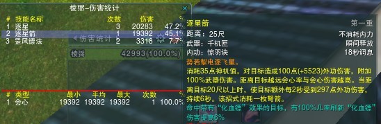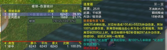 前图为6尺内用的逐星箭,后图为20尺外用的逐星箭,两者的伤害有着天壤之别,另外可以看出,附带的逐星DOT伤害比逐星箭本身的伤害还要高……