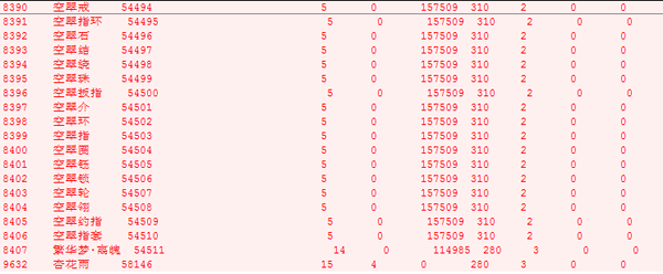 310品的戒指、1个挂件,1个坐骑(挂件和坐骑是其他童鞋上体F查询的)