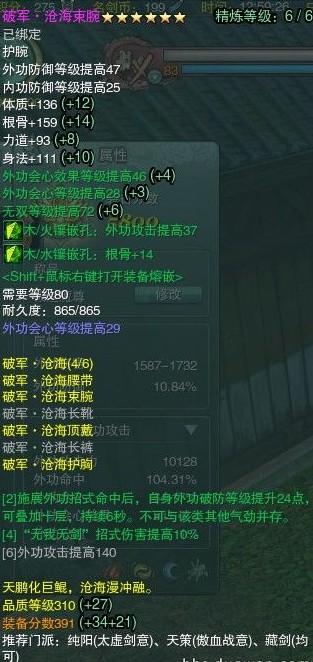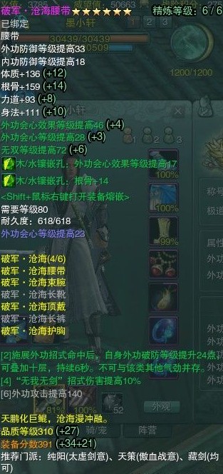 裤子用洞决的爸爸,有无双如果用的330的武器或者,340的武器,可以考虑用浩思南山的爸爸反正保证空BUFF无双在28-30左右,就差不多可以了,鞋子用灵图革运的爸爸【于吉之靴】,加的是会心会效这个比破军的鞋子更合适用我看到有些人会用,腰带精简和破军鞋子,来搭配但是我觉得,破军鞋子,外功命中的属性,不如,破军腰带本来就是会心会效合算,说到鞋子用散件要说到我9W在私货买的一个无畏外功鞋子。