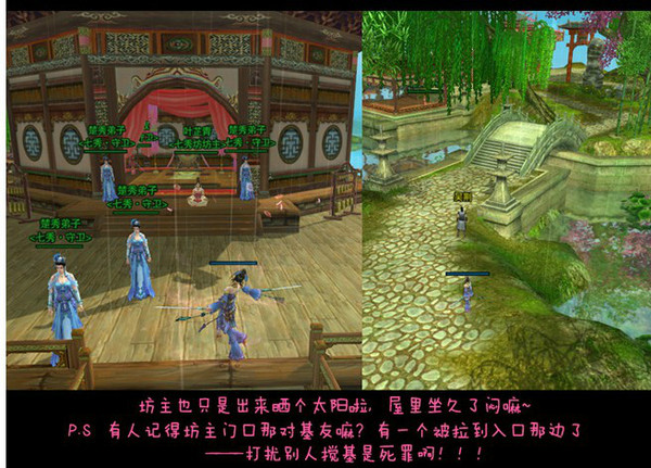 才知道原来门派地图的NPC也可以被推走,于是去各门派看看,结果如图。