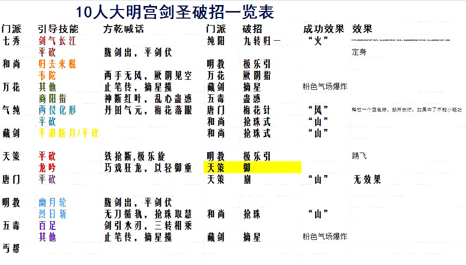 从这个对照表中可以看出,其实大家可以搭配出很多不同的破招组合出来,并非大众的"天策、唐门、纯阳"不可。但是楼主为什么屈服了呢。