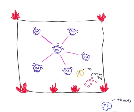 ①开怪时主T站在前场dps治疗副T在后场保证所有傀儡距离主T的距离少于其它人。