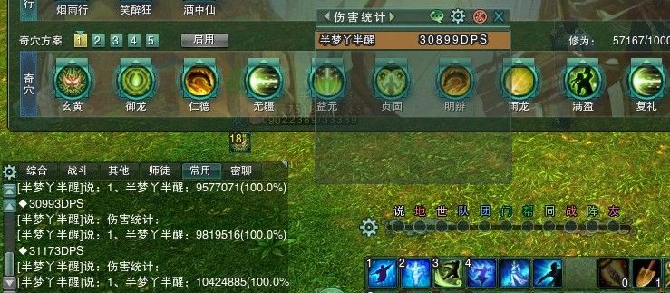 奇穴和91木桩DPS,忘了截下总伤害,所有宏都在1000W左右: