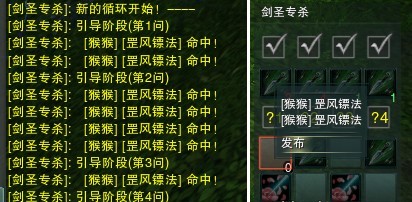 右侧是唐门的设置方式(引导阶段2次罡风镖法、破招阶段2次罡风镖法、破招阶段2次梅花针)。