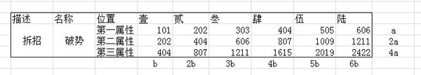 由上图可以看出,第一属性——第二属性——第三属性 的加成值是以翻倍的形式递增,系数为2的等比数列