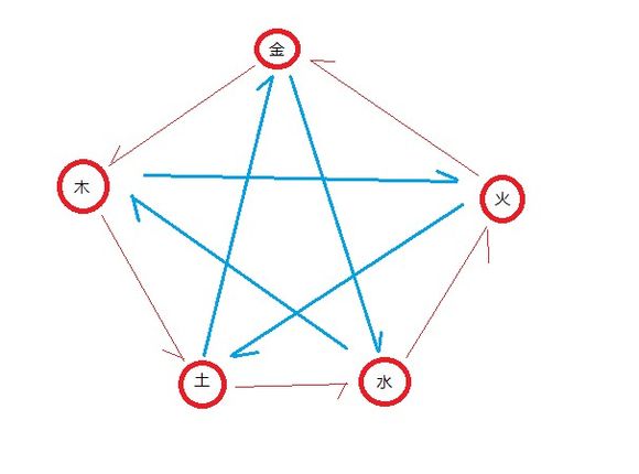红线表示相克,蓝线表示相生,以后大家要是记不住的话,自己画一下就知道了= =