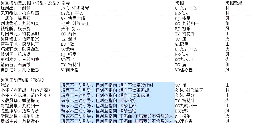 比较犀利的团,或者开荒了很久的团,或者已经通了剑圣的团,可以只要看一看破招表就能获得想要的信息。