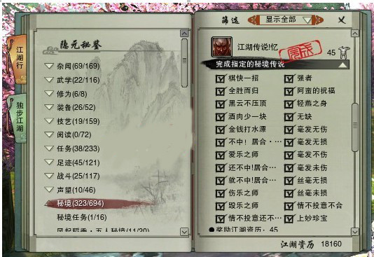 [江湖传说!忆]成就达成涵盖子成就一览: