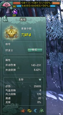 这个是单秀气的数值。搭配是帽子衣服370,腰带裤子440,护手鞋子435.武器轻离。暗器395.两个命中戒指+命中项链+大明宫445会心会效治疗腰坠(非特效)。个人感觉可以把腰坠用370命中的,项链用大明宫声望的那个项链好,因为我的腰坠是根骨孔。用大明宫声望那个项链是会心孔,这样的话,打八级石头。差不多单秀气就有将近50的会心,其他数值还不会少,性价比很高。有朋友问我要不要把衣服换440.帽子先用395,到时候换435.我感觉还是可以。看你在加速和会心上如何取舍吧。我个人比较喜欢会心一点。因为我觉得,需要你回血加的,不那么紧急。紧急的时候都是玲珑箜篌在抽,那点加速貌似没啥太大用。不过如果喜欢加速的朋友换了也不错。也就是会心会掉到44左右,其他没啥变化,反正我现在440的衣服换了就丢在仓库也没用。