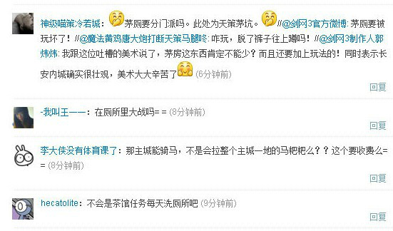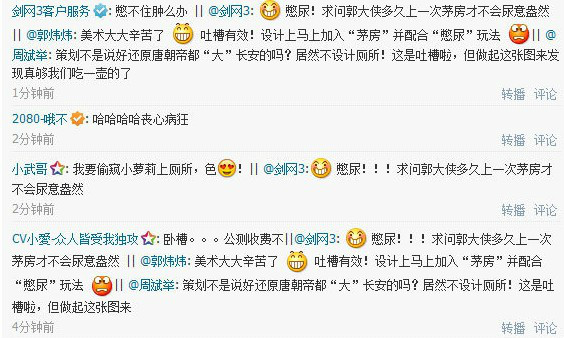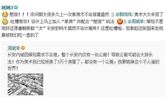 昨天,剑网3美术忍不住吐槽长安内城厕所太少!!***表示将会以此加入新玩法,大家尽情期待吧。