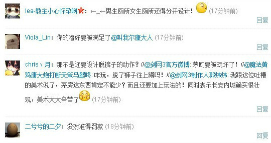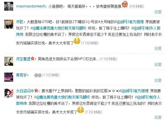 昨天,剑网3美术忍不住吐槽长安内城厕所太少!!***表示将会以此加入新玩法,大家尽情期待吧。