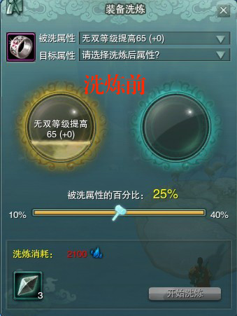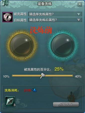 选择想要选择的目标属性同时选择被洗属性的百分比(即被洗属性的百分之多少用来转化成目标属性。详细介绍>>>)