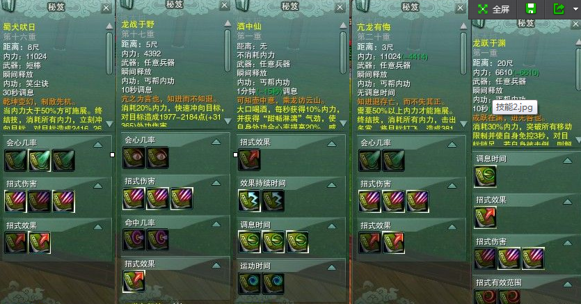 其次:酒中仙三本CD+每次喝酒BUUF增加0.5m的秘籍,喝酒CD45秒,持续27.5秒基本保证全程只有,每次喝酒只有17.5秒时间没有BUFF,性价比最高。