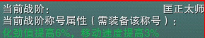 不同等级的阵营战阶对应不同的战阶称号,并且每个战阶称号具有不同的属性,当显示此称号的时候,会自动获得该称号所附带的属性。