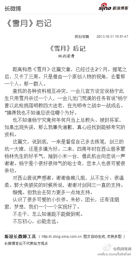 《雪月》[谨以此文,记天策府壮武将军,天枪杨宁][高天之月,映雪清幽][献给杨林先生]@西山居杨林 恭贺新资料片><~