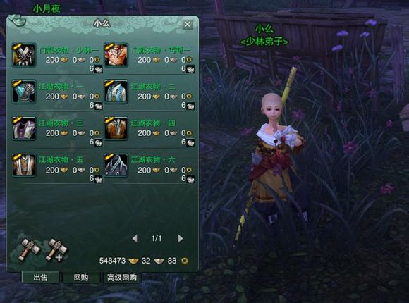 侠士需花费200金及6个【峥嵘佩】,即可在小么处购买一件小弟子的衣物,给他们更换不同的衣物,侠士自身会获得不同的收益加成,此外还将会提供随身的仓库及信使功能。