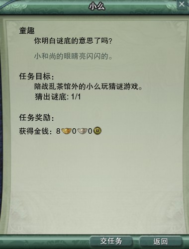 4、 侠士和小弟子建立朋友关系后,小弟子会主动跟玩家提出交互,玩家在指定时间内响应交互可获得奖励。