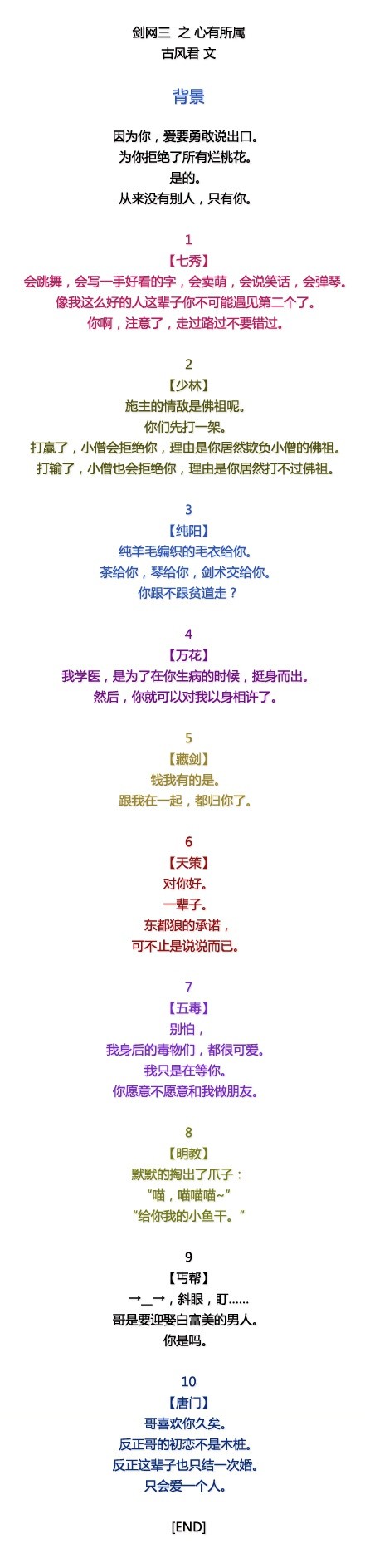 剑网三 之 心有所属 为你拒绝了所有烂桃花。是的。从来没有别人,只有你。