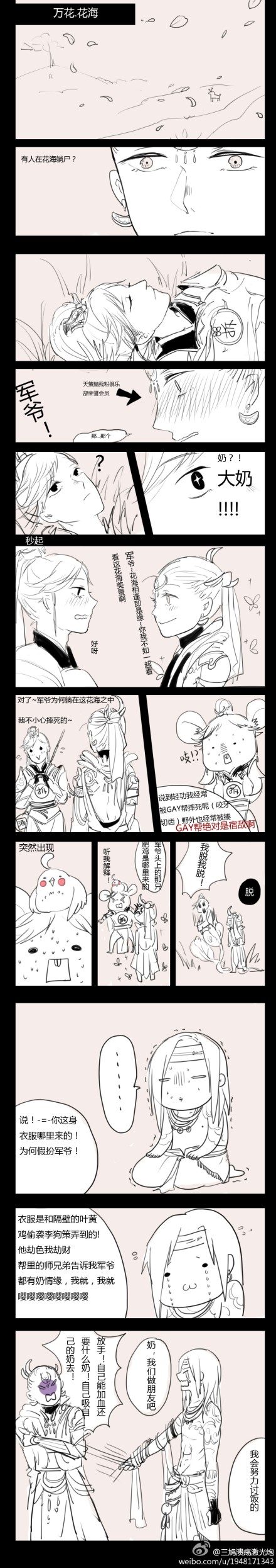 #剑网3# 今天又碰到个穿着军爷衣服在花海躺尸的GAY帮帮~他跟我说自从有了小师弟他的日子越发难过了,唐门都有木桩情缘便携包了他还是只能自己喝自己的奶~我要点32个赞!(ps:为什么GAY帮裸着上半身还是看不到咪咪!)