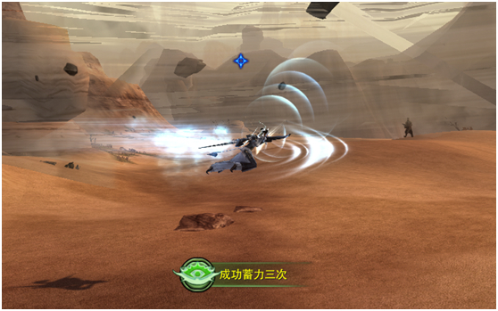 本次轻功试炼采用QTE模式,侠士想要冲入龙卷风,还需轻功借力踩踏加速,于是龙卷风吹起的这些巨石便是最好的落脚点,成功踩踏一次巨石后便会获得一层“蓄力”效果。侠士通过“踏燕追云”踩踏巨石蓄力超过三次后,即可冲入龙卷风内部,否则,会被厚厚的风壁击退。