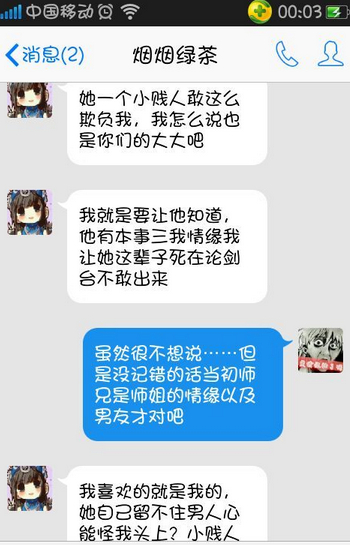 本人师弟已经被绿茶逗得给笑死在厕所截图稍后奉上,妹子始终坚持说我三了他情缘没考虑他感受,我要是真的善解人意就该拒绝,那么我就再放一张图