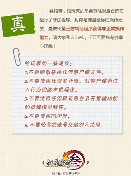 8月5日封停公告一出,人心惶惶,修改字体以及使用按键精灵的PVE党表示忧心忡忡,好在剑网3客户服务迅速给出了解释说明——