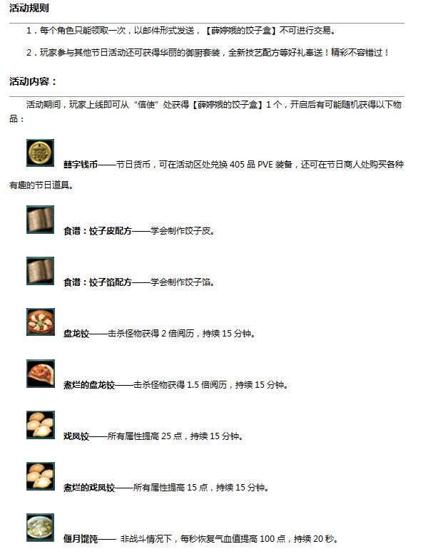 冬至佳节,《剑网3》不仅仅为各路江湖人士准备了饺子礼盒,还准备了精彩丰富的活动,饺子攻势战傲油、帮会家宴暖人心、抛掷彩球意传情,传统文化任务精……更多强力装备,更多趣味物品,更多成就称号,无限精彩,尽在不言中!