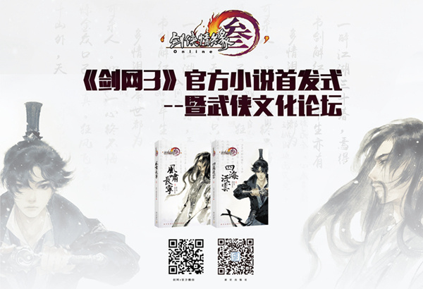 12月20日(本周日)下午两点半,《剑网3》官方小说新书首发式将在北京国宾饭店隆重举行,其中王遗风篇《风啸长宁》与谢云流篇《四海流云》的两位作者将与《剑网3》制作人郭炜炜和官方文案主创阳宝和乌鸦一起亲临现场,与广大侠士零距离互动。