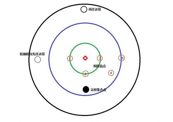 叫阵请按上图站点,坦克在5号点等BOSS,治疗必须给3-5号上减伤不然必死