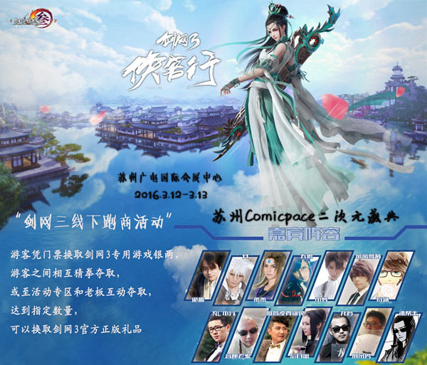 Comicpace 二次元盛典,在苏州广电国际会展中心和大家面基哦,侠士可在现场加入沐帮主、音匣老鬼、龙吟、NL不分、忘幽月、狩觞的舞台互动,亦有同人签售活动。